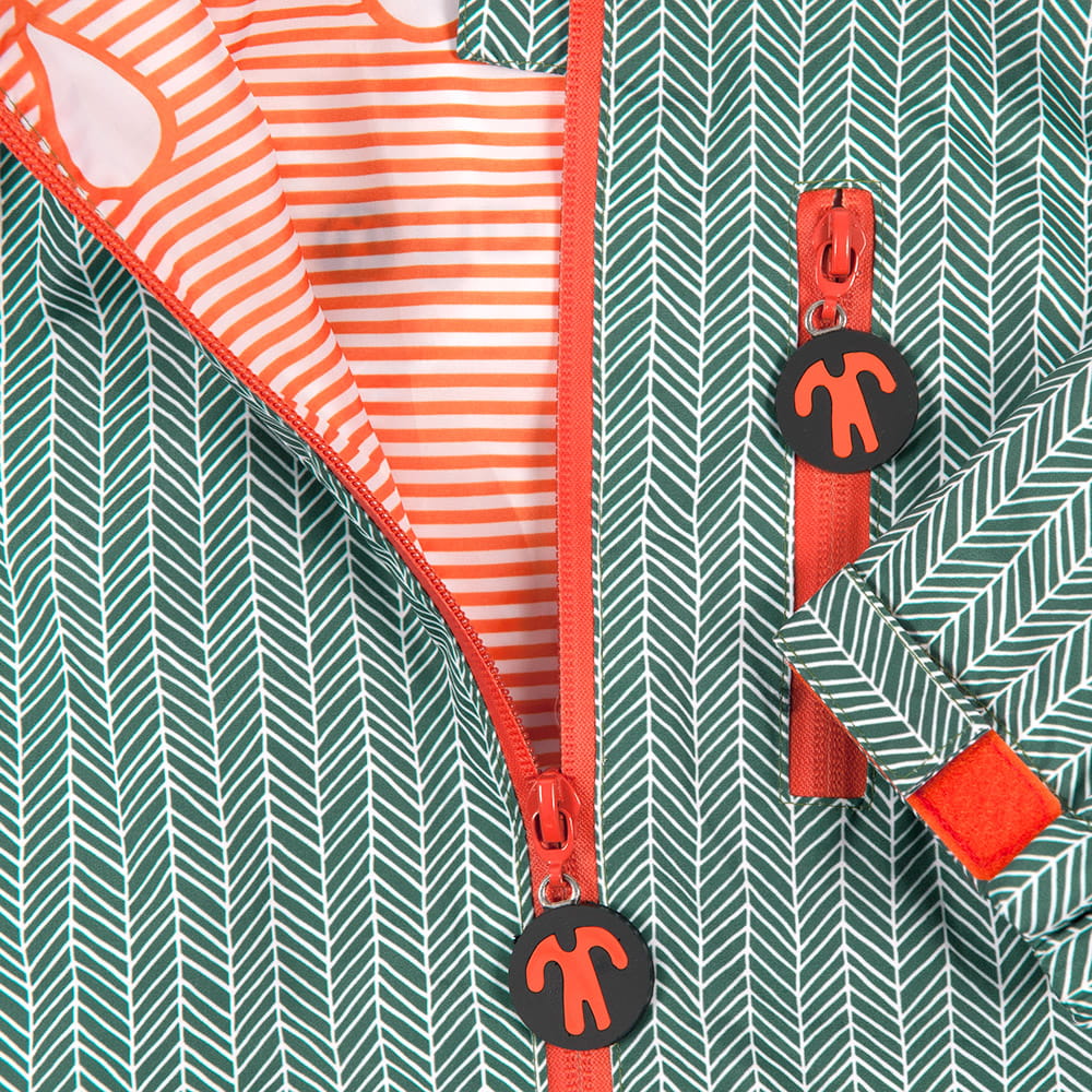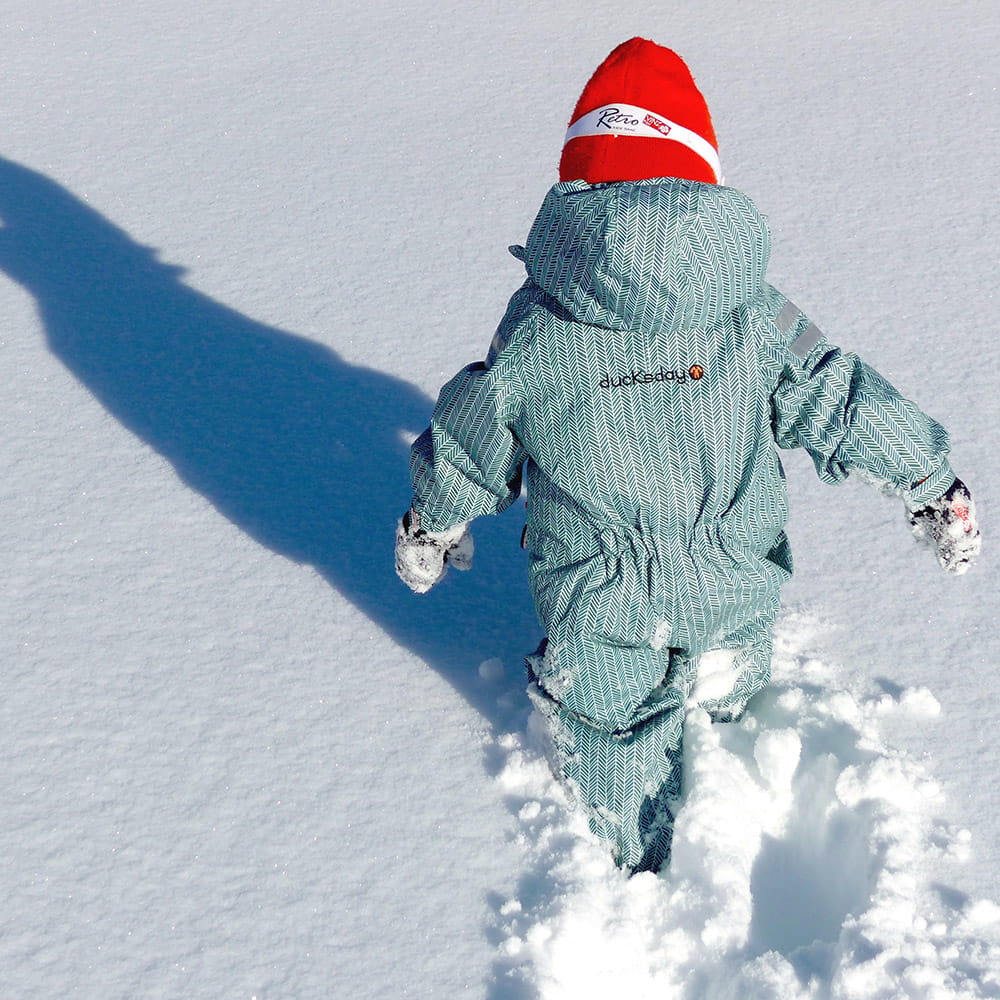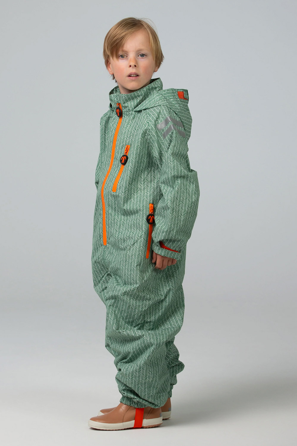 Modny, zabawny, oryginalny i praktyczny jednoczęściowy całoroczny kombinezon na deszcz dla chłopca Ducksday 'Rain and Snow' z membraną, bez ociepliny. Kombinezon jest przeciwdeszczowy, przeciwwiatrowy, oddycha, a zimą chroni również przed śniegiem. Składa się do niedużej torebeczki znajdującej się wewnątrz nogawki kombinezonu, dzięki czemu można go mieć zawsze przy sobie. Można go używać wiosną, latem, jesienią i zimą.