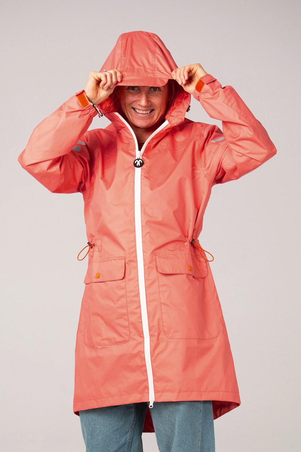 Czy zawsze byłaś zazdrosna o swoje dzieci bawiące się beztrosko w kałużach i noszące nasze wesołe ubrania przeciwdeszczowe? Teraz możesz dołączyć do nich w nowym damskim płaszczu przeciwdeszczowym! Świetny krój, regulowana talia, praktyczne detale i modne kolory sprawiają, że jest to idealna wodoodporna długa damska kurtka na każdą okazję i wszelkie niesprzyjające warunki pogodowe. Doskonale sprawdzi się również na rower, spacer, w góry, na łódkę i nad morze dzięki długiemu zamkowi, który można rozpiąć z obu stron.