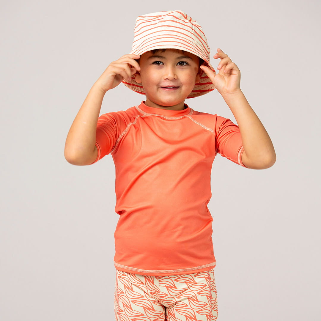 Kapelusz uv dla dzieci jest idealny na plażę, nad morze, jezioro, rzekę, basen, do parku czy ogródka. Bardzo praktyczny, oddychający, z wentylacją. Materiał zawiera permanentny filtr ochronny o najwyższym współczynniku ochrony UPF 50+ - ponad 97% szkodliwych promieni UV jest blokowanych, aby chronić wrażliwą skórę dzieci. Filtr UV zawarty w materiale chroni dziecko przed szkodliwym promieniowaniem słonecznym nawet po wielokrotnym praniu. Kapelusz z wiązaniem posiada paski z dżerseju na podbródek które można zawiązać, dzięki czemu nie zwieje go wiatr.