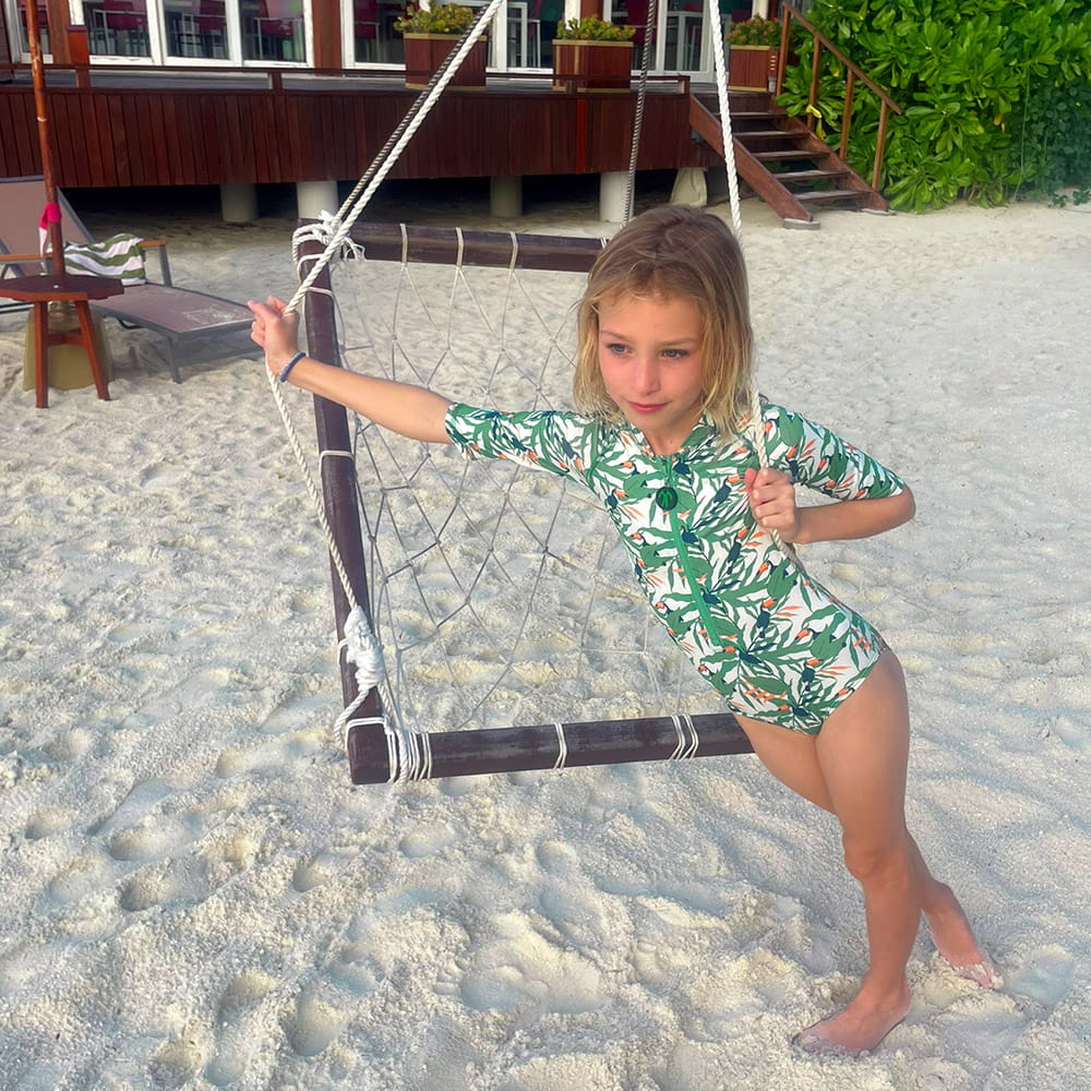 -strój kąpielowy zrobiony jest z wodoodpornego materiału z filtrem UV 50+, który zapewnia maksymalną ochronę delikatnej skóry dziecka przed szkodliwym promieniowaniem słonecznym,